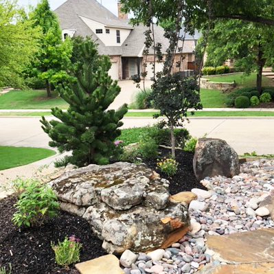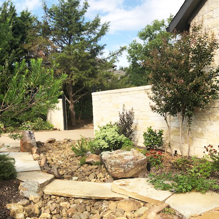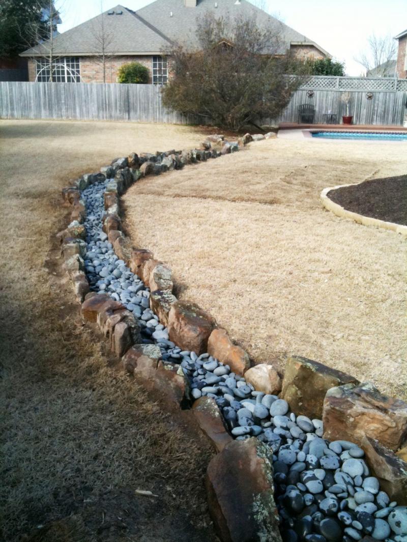 French drains are not always the answer. They tend to clog and retain water, which increases mosquitos. Using natural rock is a great solution for your drainage problems. We install dry creek beds, and flagstone for bridges and walkways. Make your drainage problem eye appealing and functional at the same time.