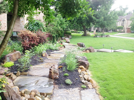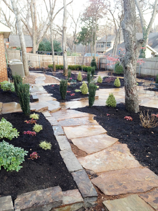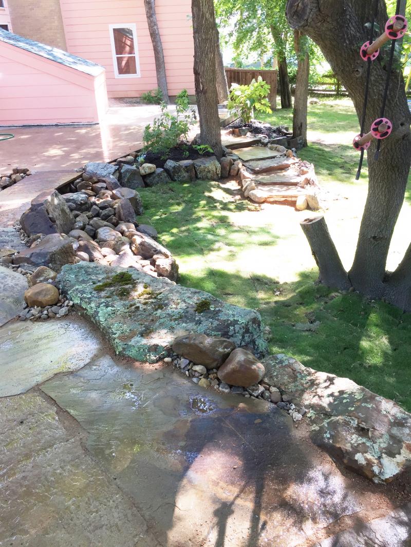 Below are solutions for your yard when the shade of your trees makes it difficult for grass to grow. Also created a drainage solution.
